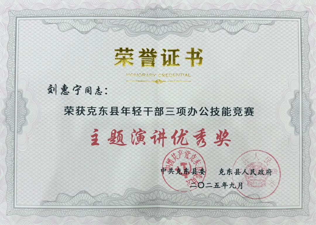 9月19日,克东县年轻干部三项办公技能竞赛颁奖仪式圆满结束,克东法院荣获团体奖,立案庭(诉讼服务中心)干警刘惠宁荣获主题演讲优秀奖。