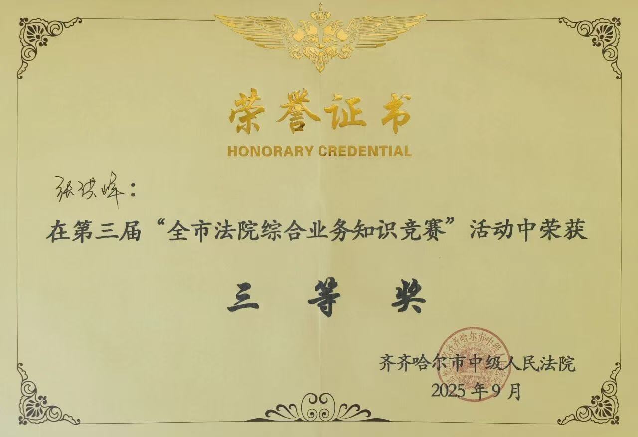 近日,第三届“全市法院综合业务知识竞赛”活动圆满举办,克东法院民事审判庭审判员张洪峰荣获三等奖。