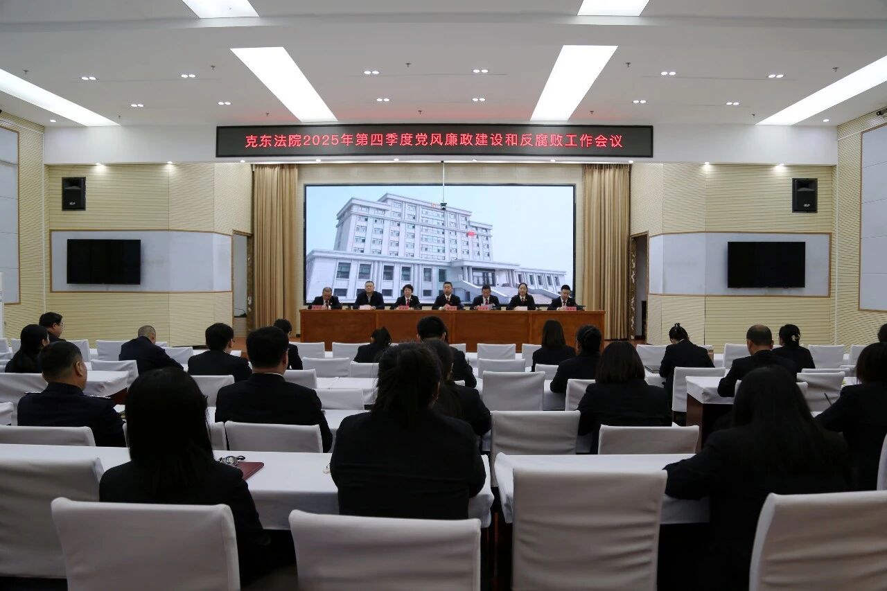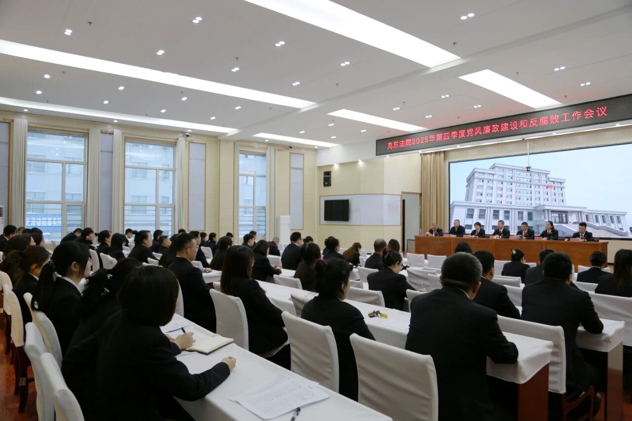 为进一步推动全面从严治党,持续营造风清气正的政治生态。12月25日,克东法院召开2025年第四季度党风廉政建设和反腐败工作会议,党组书记、院长徐万玉出席会议并讲话,县纪委监委派驻司法局纪检监察组组长焦本义到会指导,党组副书记、副院长丁怀东主持会议,全体干警参加会议。
