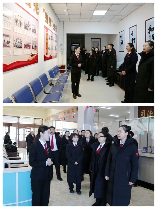 在克东法院,北安法院干警们先后参观了诉讼服务中心、科技法庭、党建文化墙、羁押室等功能区域,直观了解了克东法院惠企利民、多元解纷、队伍管理等工作取得的新成效,在互学互鉴中拓宽工作思路、凝聚发展共识。