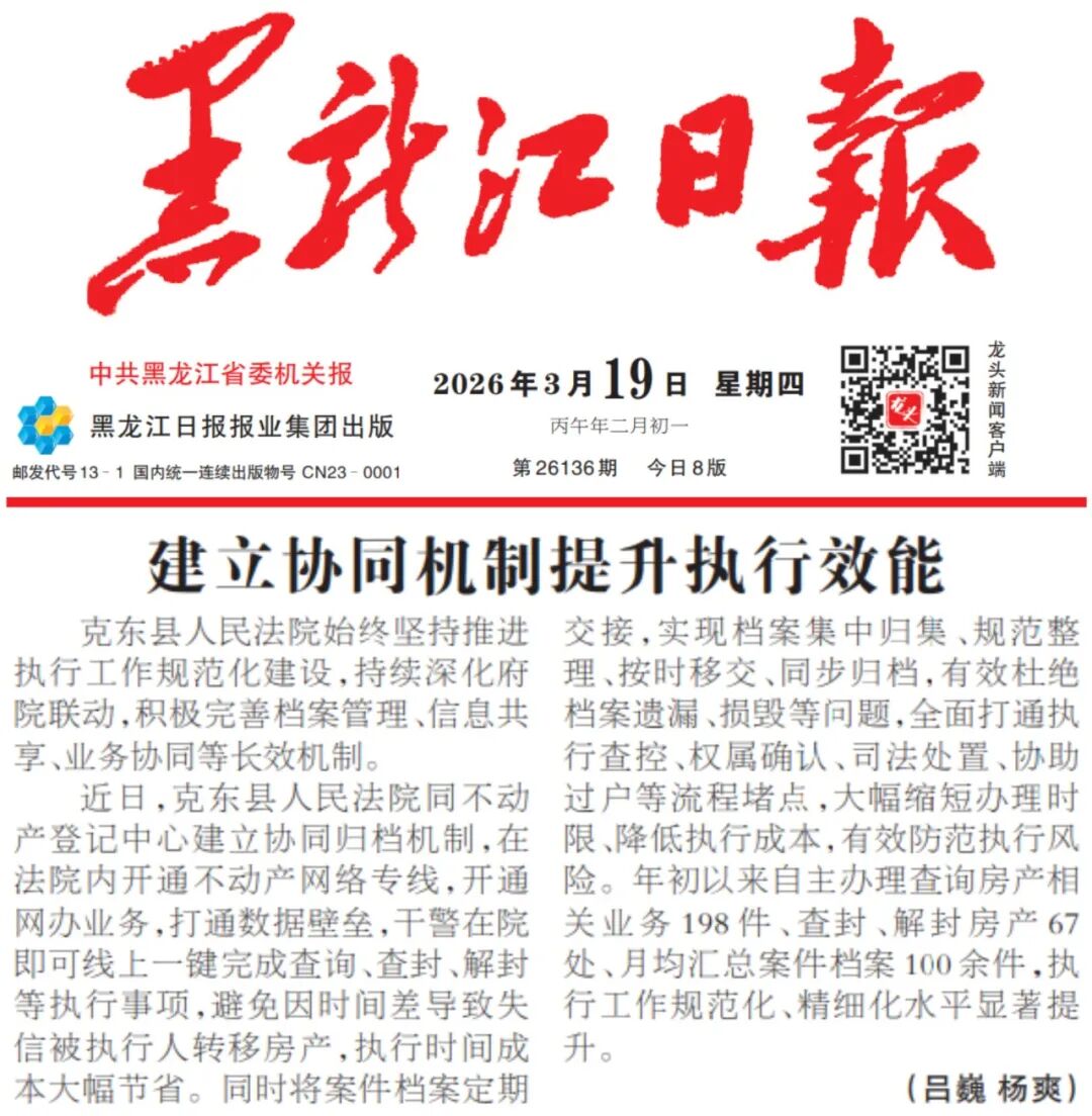 【媒体聚焦】《黑龙江日报》刊发:建立协同机制提升执行效能